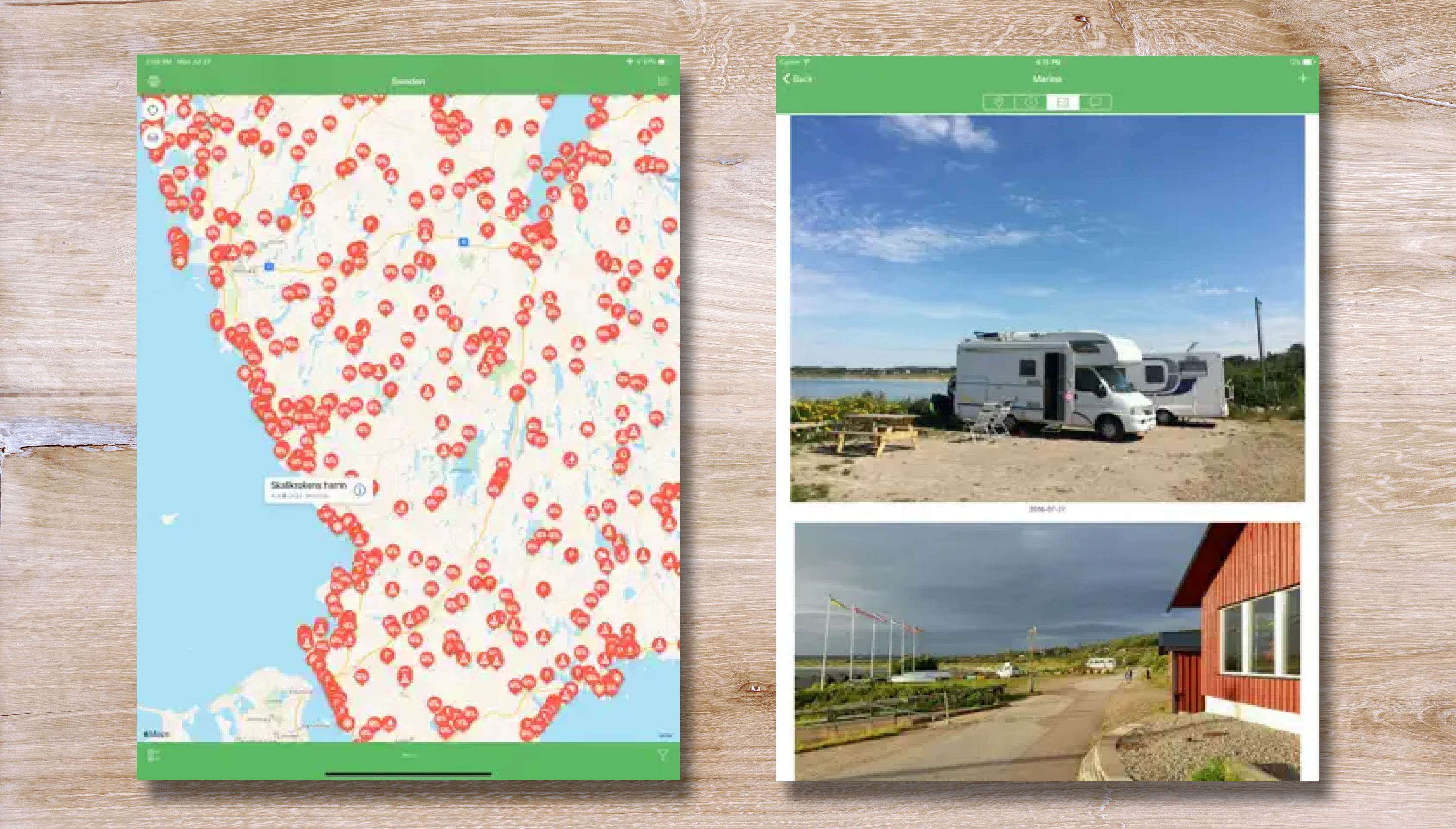 Designad för att användas på en iPad är detta ett bra alternativ för den som letar efter ställplatser i Skandinavien och övriga Europa. Delta och ladda upp bilder för att göra appen mer komplett för framtiden. Enkel att använda och en hjälpsam kamrat som gärna följer med på resan.
