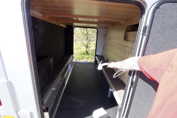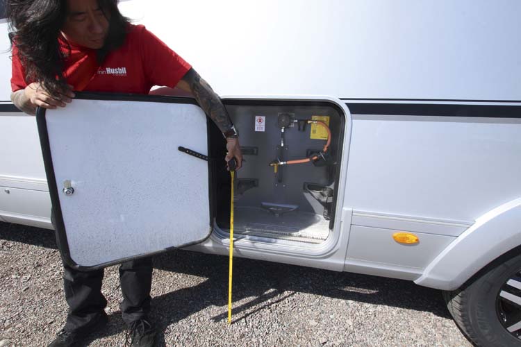 Med 2020 års modell har Adria sett över garageytan. Bättre access och en bättre belysning samt omtänksamma detaljer som flera olika former av strömuttag. Men varför en så högt placerad lasttröskel för gasoltuberna? Hela 50 cm höjd och inte heller någon släde som underlättar processen.