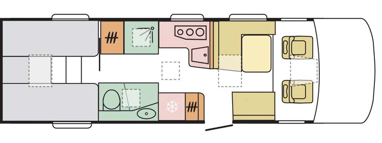 Just utrymme och förvaring är två av husbilens främsta styrkor. Faktum är att just förvaringsutrymmen förtjänar ett eget omnämnande. Utöver de redan nämnda förvaringsmöjligheterna hittar du även golvförvaringsutrymme, förvaringsutrymme under trappsteget i sovrummet. Vid trappans båda sidor hittar du även två djupa förvaringsytor och bredvid badrummet skämmer Adria bort dig med ytterligare en klädgarderob. Lägg därtill alla överskåp samt övriga fack lite varstans både i bodels- och bildelsytan.