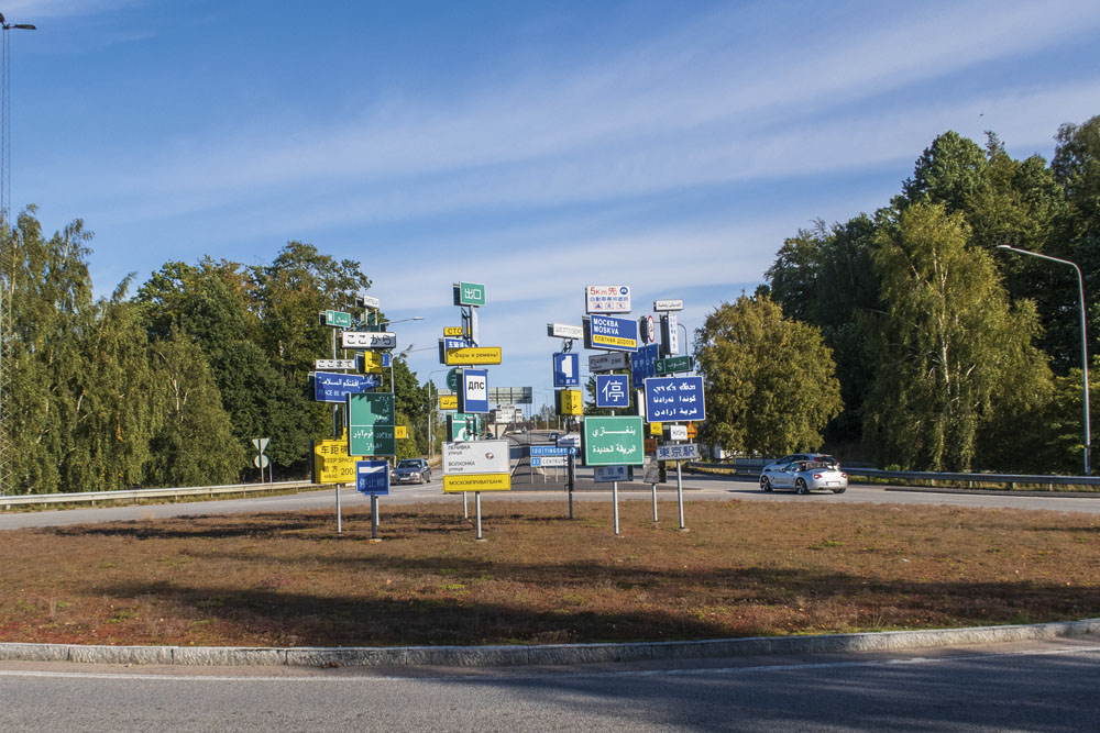 Redan vid infarten, i en rondell intill Ikea-museet, möts vi av det omdiskuterade konstprojektet ”Världens hem” – skapat av konstnären David Svensson på uppdrag av kommunen, vars avsikt är att ge en berättelse om vår samtid och hur världen tar plats i lilla Älmhult.