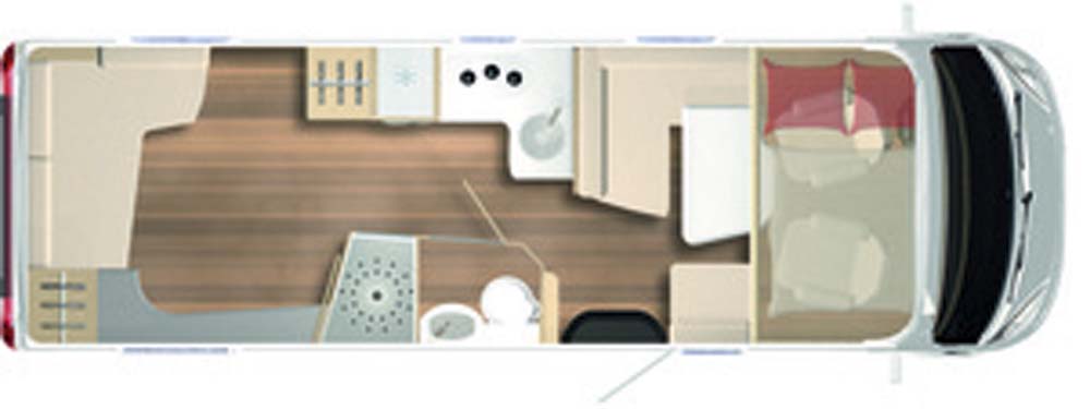 Bilen är 7,65 meter lång och bygger på Fiats lågbyggda lättviktschassi. Det innebär att den också har alla uppdateringar som Fiat Ducato begåvats med, inklusive den 9-stegade riktiga automatlådan.