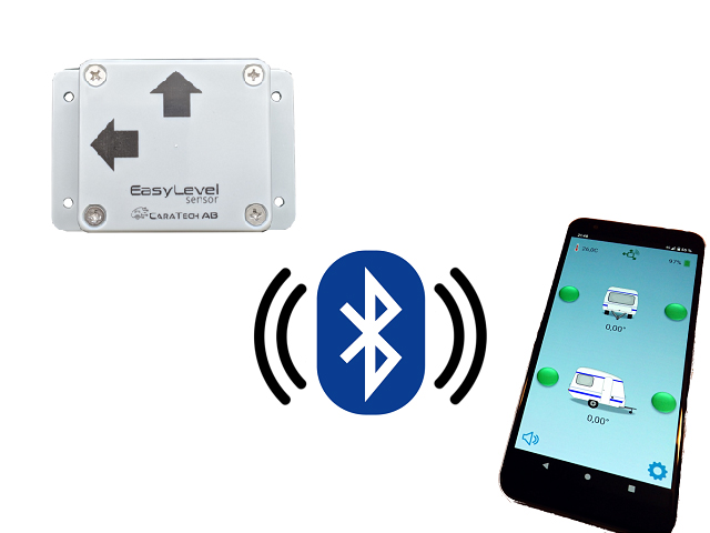 EasyLevel® från CaraTech AB är ett digitalt vattenpass som består av en puck som du sätter fast på lämplig plats i husbilen och sedan kopplar till en app i din telefon. När du har ställt in vissa viktiga parametrar och hittat 0-graderspunkten så är den klar att användas. Utan att behöva lämna förarplatsen så kan du se om husbilen står i våg. Den uppges passa alla husbilar (och husvagnar).