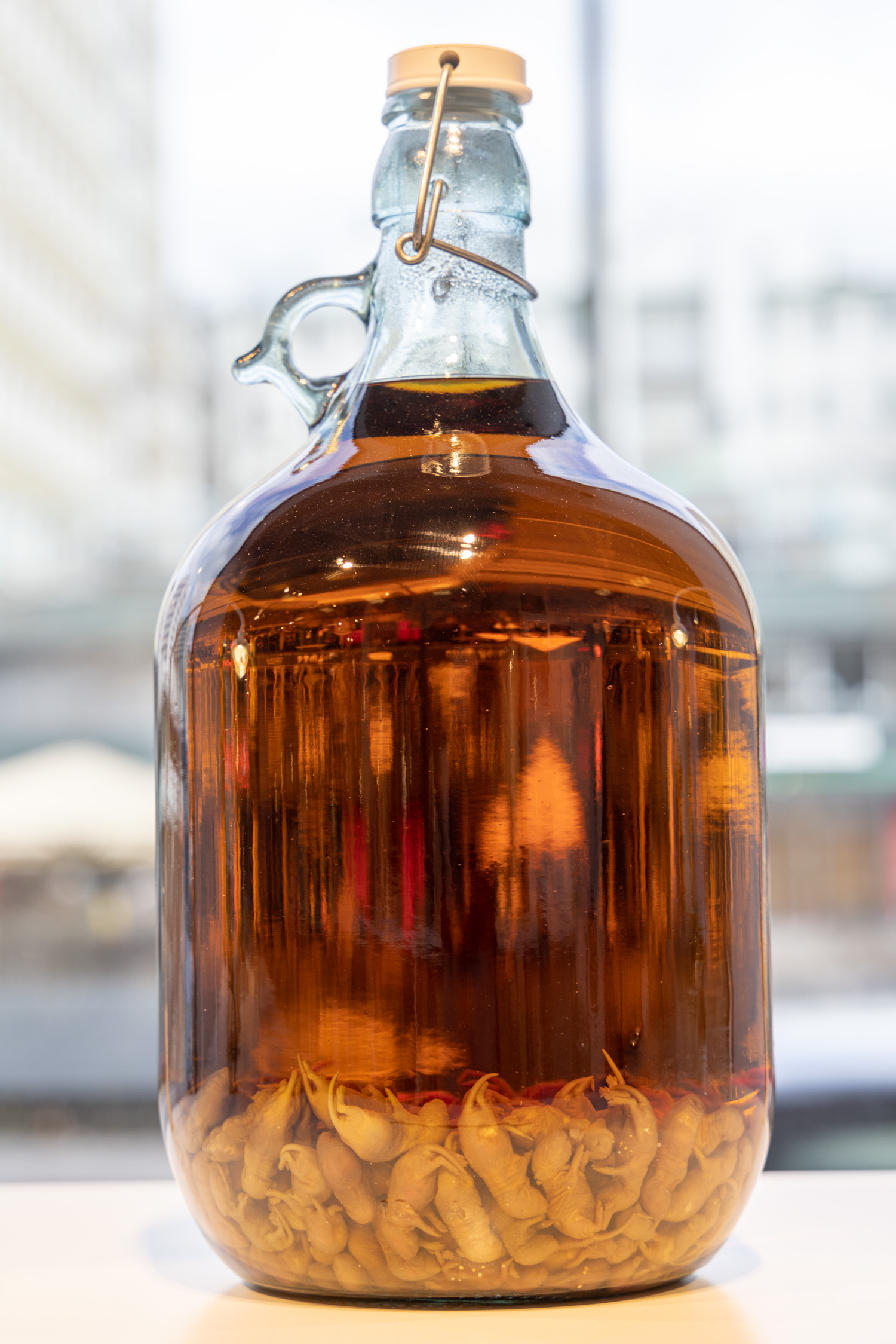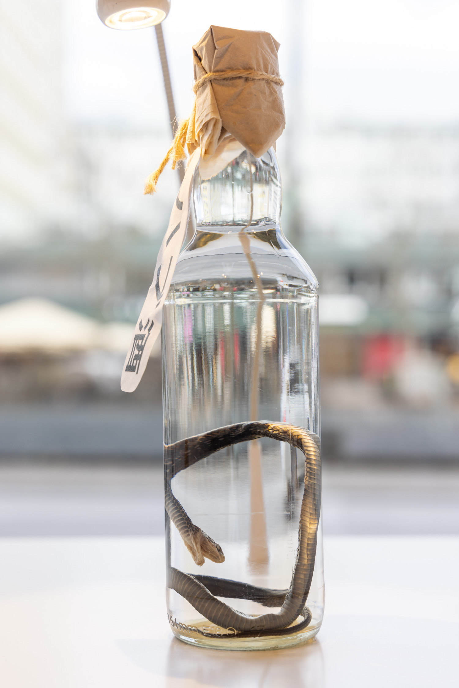 Destillerat risvin blandas med honung och örter. Det låter inte så illa… Men, sedan kräver receptet en orm. Ormen kyls ned tills den blir medvetslös och sedan rensas den på inälvor, detta för att drycken inte ska få en frän lukt. Därefter sys den ihop igen och läggs i flaskan. När ormen tinar så vaknar den upp och dör i en aggressiv och stående position. Alkoholen neutraliserar giftet och sägs ha medicinska egenskaper. Drycken tillverkas i Japan.