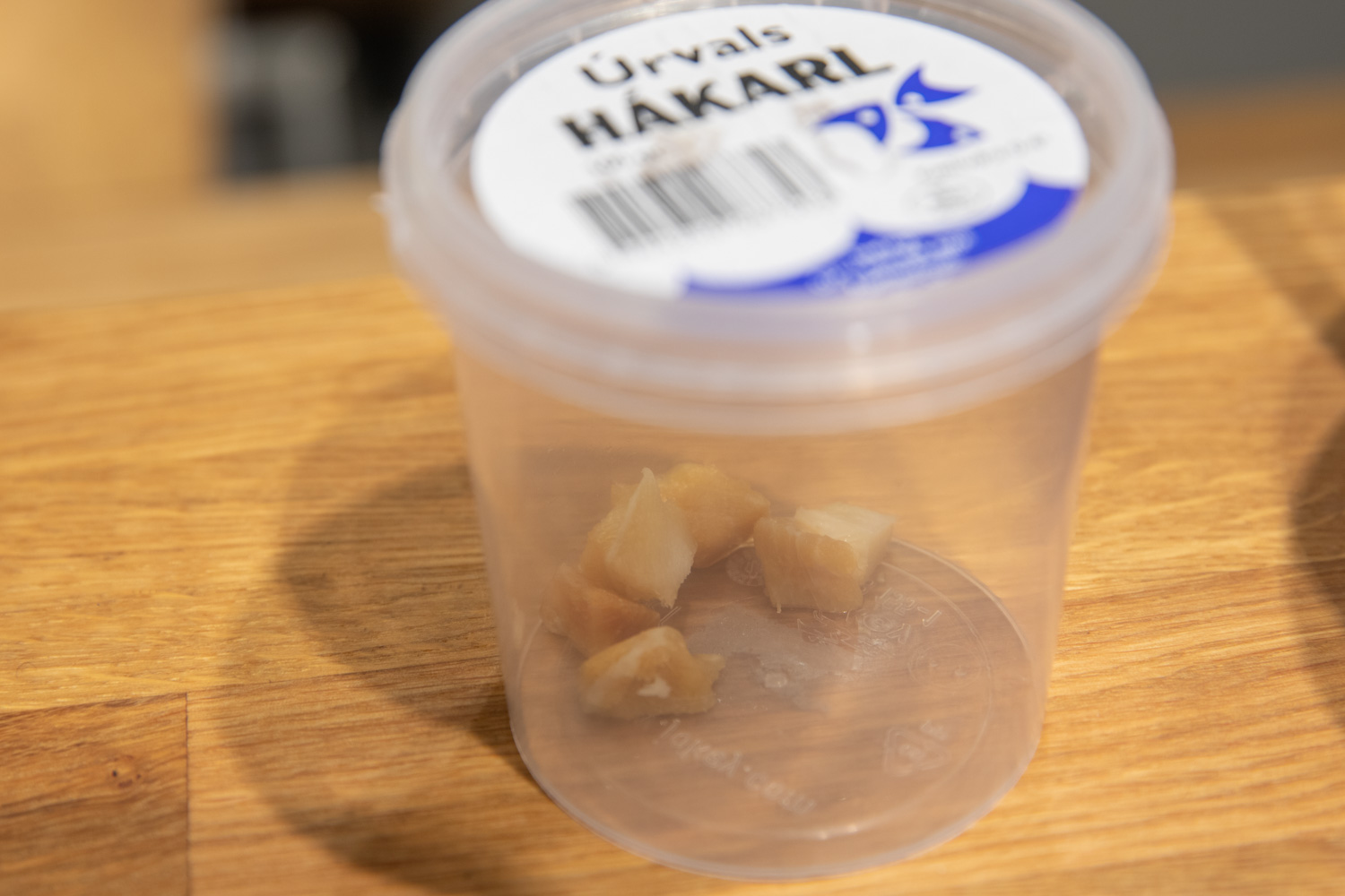 En delikatess från Island som ni kan läsa mer om i reportaget i tidningen. Det finns en anledning till att stjärnkocken Anthony Bourdain beskrivit denna delikatess som ”det värsta, äckligaste och det mest fruktansvärda han någonsin ätit”. Vad är det? Enkelt förklarat är det fermenterad haj. Och med tanke på att hajen avsöndrar sitt urin genom huden så är det också ammoniak som den sega biten smakar.