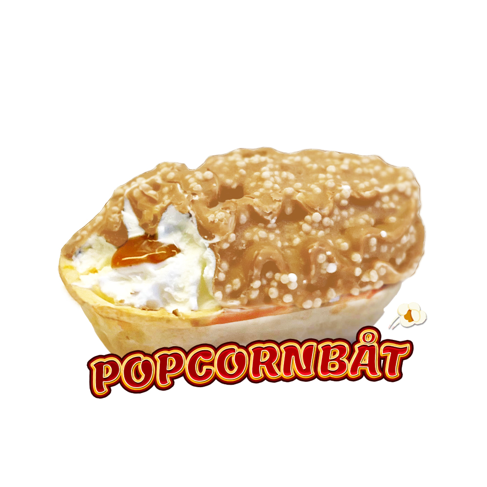 Gräddglass med popcornsmak, saltkolarippel och kolaöverdrag med crisp. Oavsett om du gillar popcorn eller inte så blir detta snabbt en favorit. Ett stort plus är att där inte finns någon risk att popcornbitarna fastnar i tänderna.
