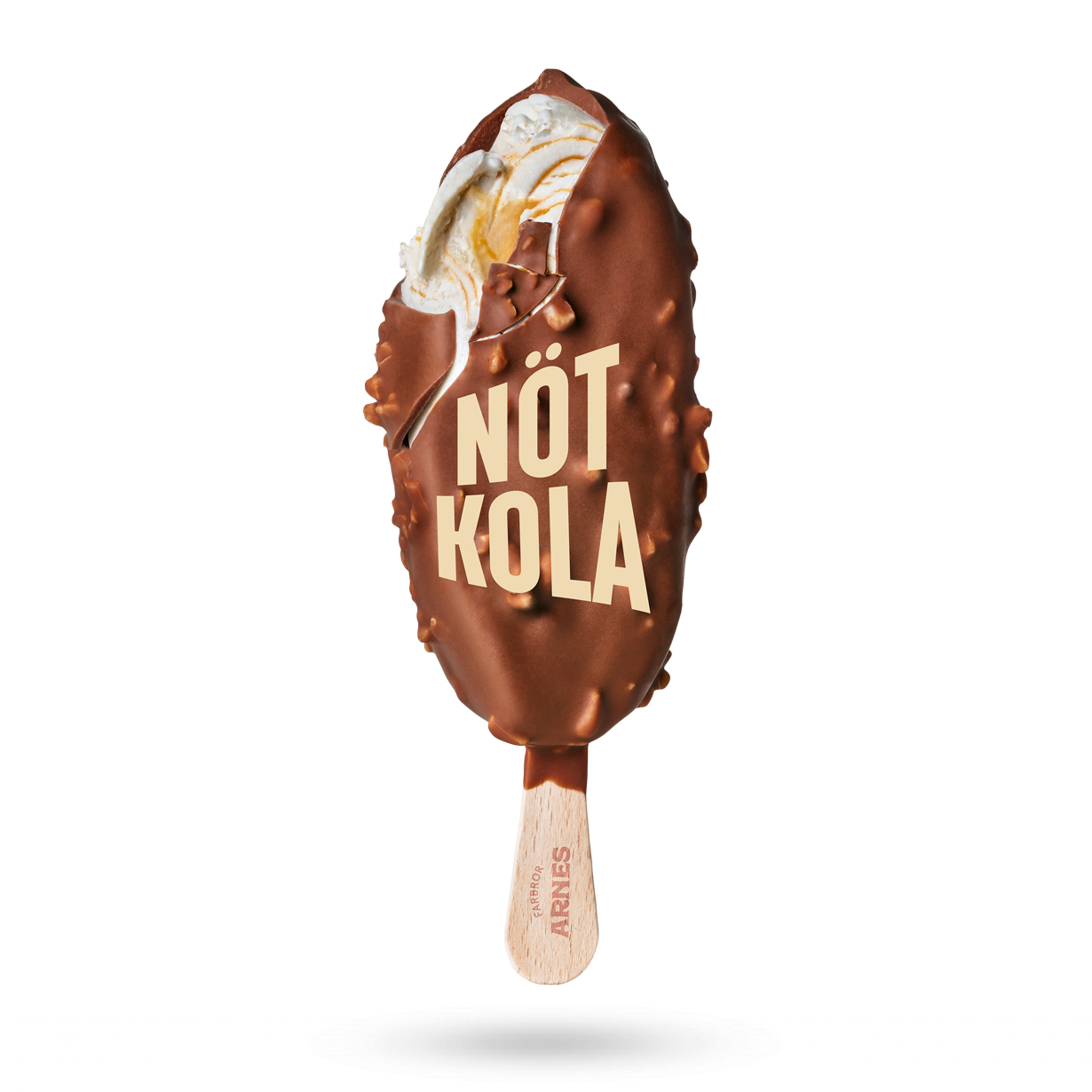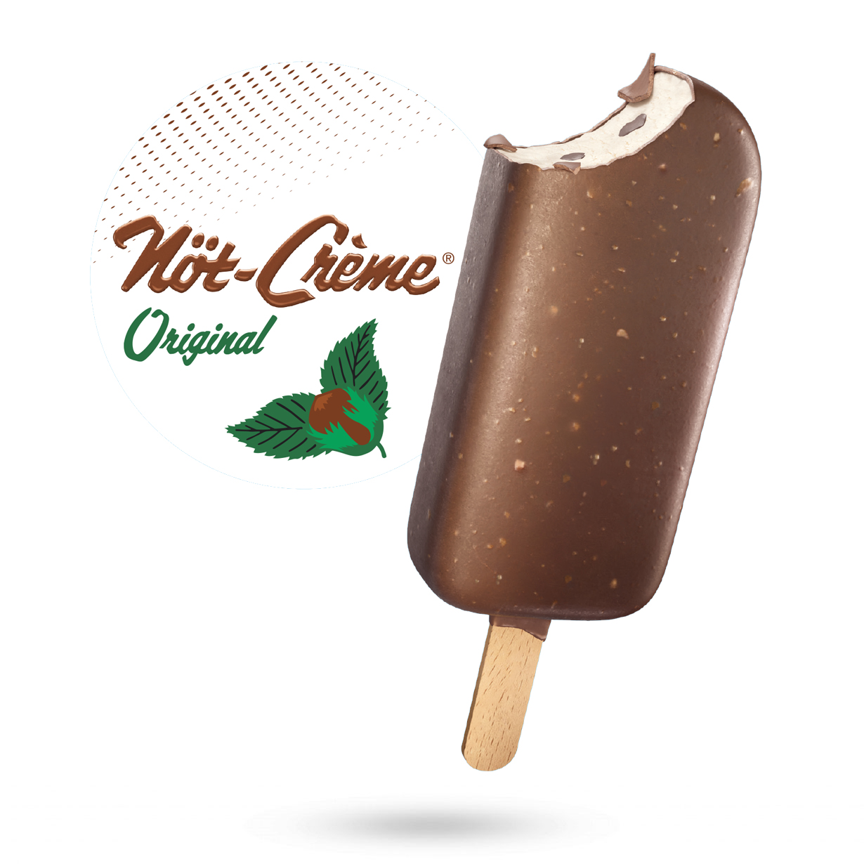 Hasselnötsglass med nöt-crème-fyllning, doppad i choklad med hasselnötskross. Äntligen slipper du ringla nöt-crème på glassen själv utan får allt i ett. En väldigt uppskattad nyhet.