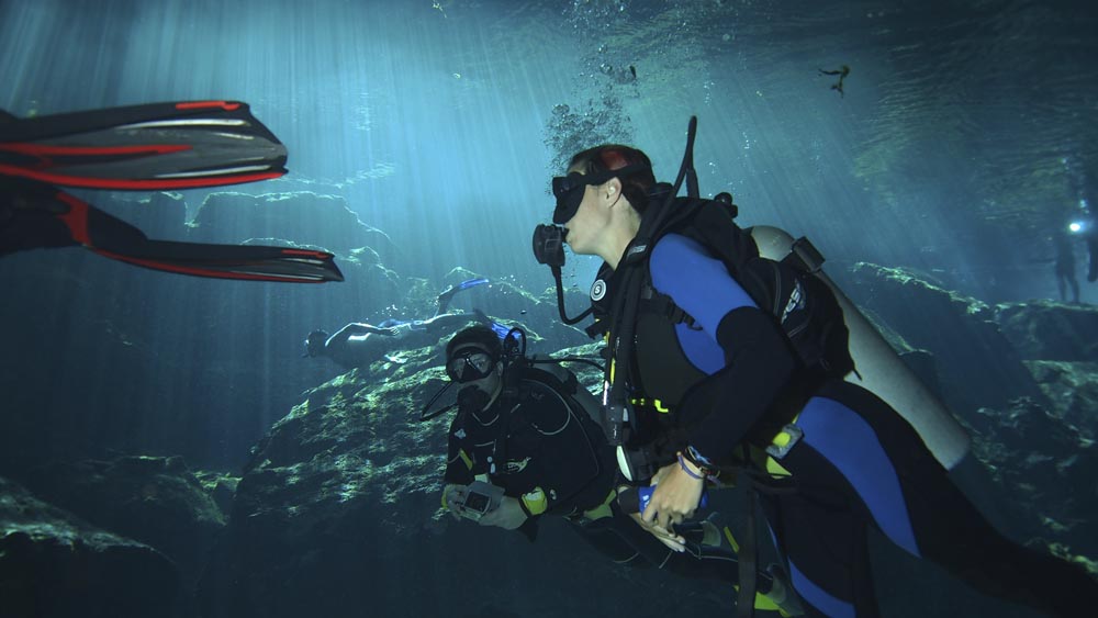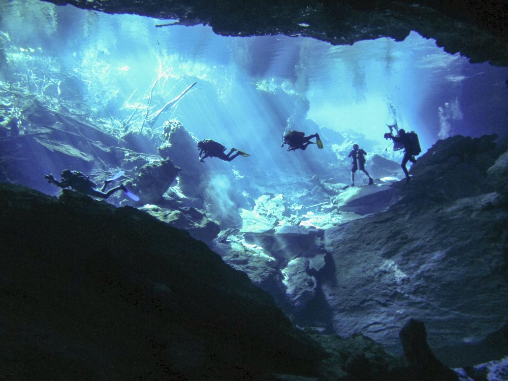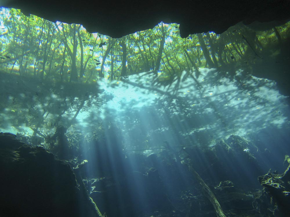 En cenote är nödvändigtvis inte en grotta utan ett slukhål som skapas när berggrund rasar och grundvattnet kommer fram och blir synligt. Dessa är vanligast i Mexiko och folk flockas för att bada och simma i dessa hål. Men, det många inte vet är att hålet i sig leder in i en labyrint av grottor och slingor under vattnet. På med dykutrustning och ficklampa och bege dig in i det avancerade grottsystemet. Det är också här som du kan uppleva haloklin när det är som bäst. Haloklin är när vattenmassor med olika salthalt skapar en skiktningsgräns. När du dyker igenom denna blir det nästan en psykedelisk känsla. Ett tips är att sätta handen framför dig och se den dansa och ändra form. Fortsätt sedan djupare in i grottan. Stundtals är det enbart med hjälp av en ficklampa som du får ljus. Det må låta läskigt men sanningen är att det är en riktigt häftig upplevelse som bara måste upplevas. Ifall dykningen inte tilltalar dig så går det lika bra att simma eller snorkla i cenotens yta.