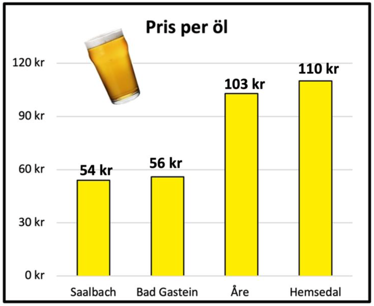 – I Alperna är skidåkningen och afterskin inte bara bättre utan även ofta billigare. I afterski- meckat Saalbach och i svenskorten Bad Gastein får man en stor stark för runt femtiolappen, det är svårt att slå i Sverige. Trots att den svenska kronan just nu är svagare mot euron så är det generellt betydligt billigare att både äta och dricka i stora delar av Alperna, säger Hanna Bernvid.