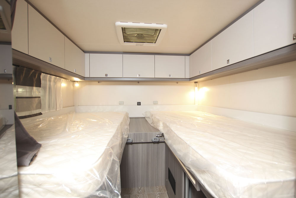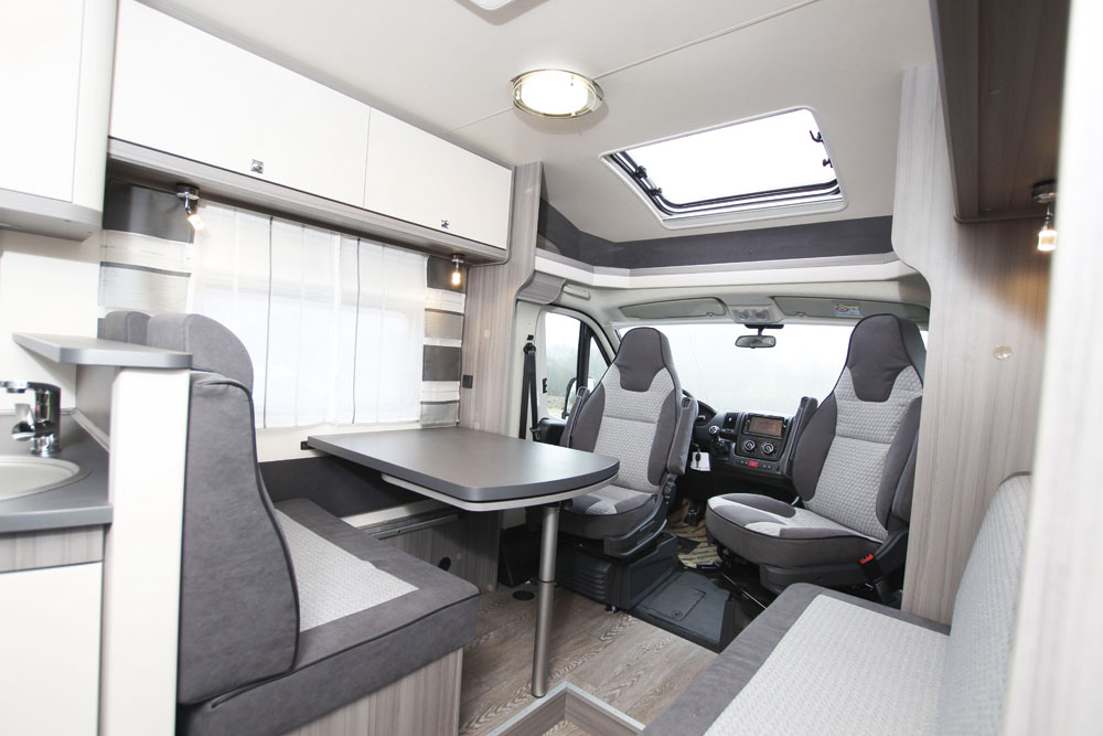 Det innebär att fyra personer kan få sovplats i husbilen, men bäst lämpad bör lösningen vara för tvåpersonshushåll med övernattningsgäster lite då och då. Eller en familj där alla går och lägger sig samtidigt, då dinetten går förlorad när överbädden sänks ned.