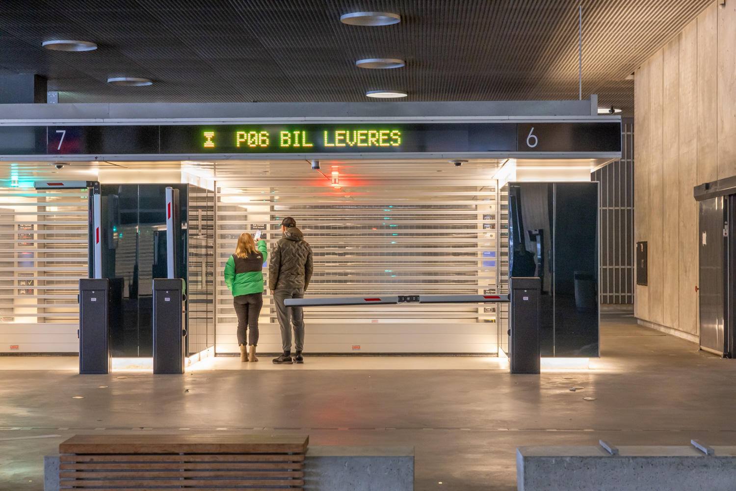 Kör in bilen i garaget under DOKK 1. Kör in bilen i en hiss och kliv ut. Bilen åker nu iväg på egen hand till en parkering. När du är färdig med alla ärenden blippar du ditt kort och bilen kommer tillbaka. Busenkelt och väldigt fascinerande att se. Det blir nästan som en attraktion i sig att se hur bilarna åker iväg och sedan kommer tillbaka. Tyvärr går det inte att testa med husbilen då höjden i parkeringsgaraget är för låg för husbilar att komma in i.