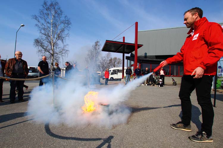 - Du ska ha en fungerande brandvarnare hemma. Varför skulle det vara skillnad i en husbil? Testa brandvarnaren när du hämtar husbilen inför varje resa, så att du vet att den fungerar. Att ha ett reservbatteri tillhands under resan är förstås en självklarhet. Som alltid gäller det att upptäcka en brand i ett så tidigt skede som möjligt. I ett snabbt brandförlopp gäller det att ha en så effektiv släckare som möjligt. För Leif finns bara ett alternativ: