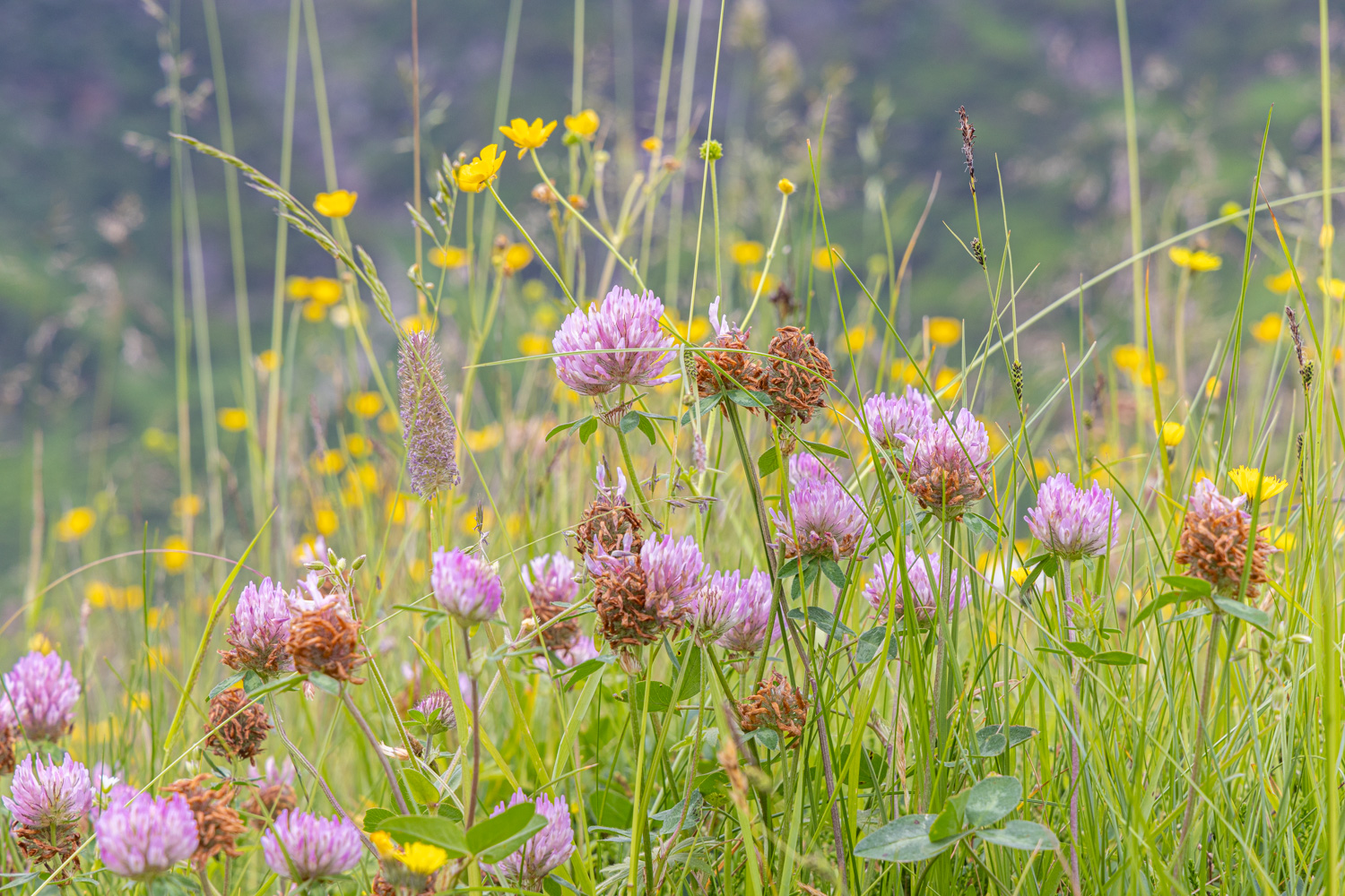 Vi tar oss in i nationalparken. Just denna dag är det problem med kortläsaren så de tar bara kontanter (5 euro per person). ”Cash is King” heter det ju av en anledning. Däremot så skapar det en hel del problem och köerna växer. Turligt nog så löser det sig ganska så snabbt och snart möter vi upp gruppen på parkeringen. Hajken är guidad på österrikiska och engelska så att alla ska förstå vad guiden säger. Promenaden börjar och vi beger oss ut på vandringsleden. Innan vi kommer till stället där vi ska leta efter mineraler väntar en promenad med boskap och en mängd olika blommor. Namnen på de olika växterna avlöser varandra och gruppen hjälps åt att fylla på med information.