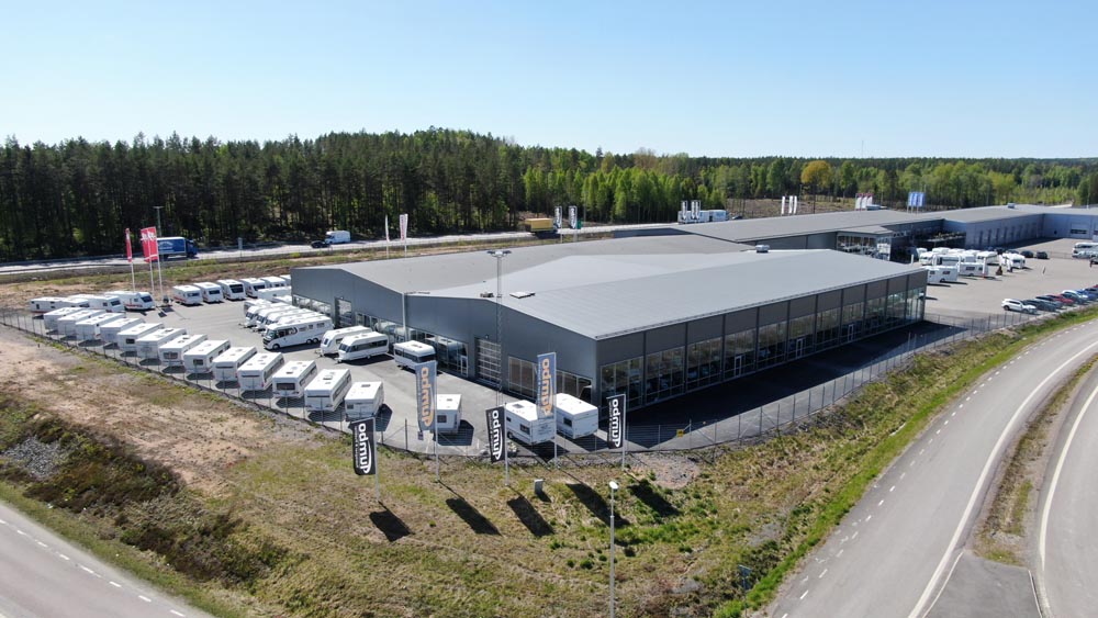 Nu när Husbil Stockholm går av stapeln först i slutet av mars kan man säga att återförsäljarmässan hos Tumbo Husvagnar inleder vårsäsongen. Tumbo husvagnar ligger som namnet antyder vid den lilla sörmländska orten Tumbo. Har du åkt på E20 från Stockholm mot Göteborg så har du säkert sett Tumbo husvagnars stora bygge efter vägen, ett par mil väster om Eskilstuna.